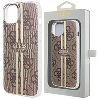 Etui Guess IML 4G Gold Stripe na iPhone 15 Plus / 14 Plus - brązowe