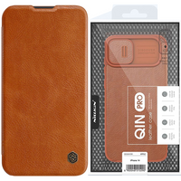 Nillkin Qin Leather Pro Case etui iPhone 14 Pro Max osłona na aparat kabura pokrowiec obudowa z klapką brązowy