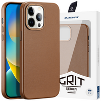 Dux Ducis Grit skórzane etui do iPhone 14 Pro Max elegancki pokrowiec ze sztucznej skóry (kompatybilne z MagSafe) brązowy