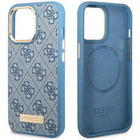 Etui Guess GUHMP14LU4GPRB na iPhone 14 Pro - niebieskie 4G Logo Plate MagSafe