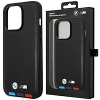 Etui BMW BMHMP14X22PTDK na iPhone 14 Pro Max - czarne Leather Stamp Tricolor Magsafe