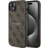 Etui Guess 4G Collection Leather Metal Logo MagSafe na iPhone 14 / 15 / 13 - brązowe