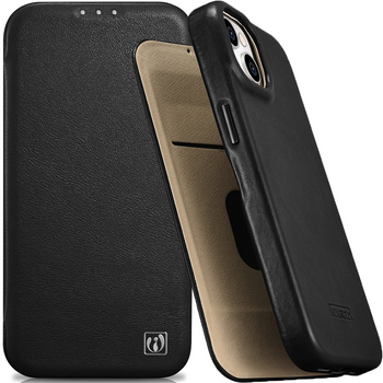iCarer CE Premium Leather Folio Case skórzane etui iPhone 14 Plus z klapką magnetyczne MagSafe czarny (WMI14220715-BK)