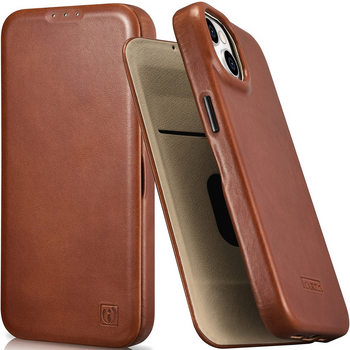 iCarer CE Premium Leather Folio Case skórzane etui iPhone 14 Plus z klapką magnetyczne MagSafe brązowy (WMI14220715-BN)
