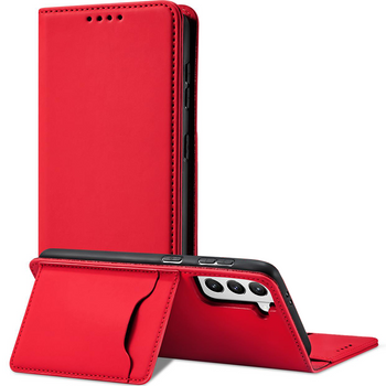 Magnet Card Case etui do Samsung Galaxy S22+ (S22 Plus) pokrowiec portfel na karty kartę podstawka czerwony