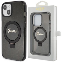 Etui Guess Ring Stand Script Glitter MagSafe na iPhone 15 - czarne