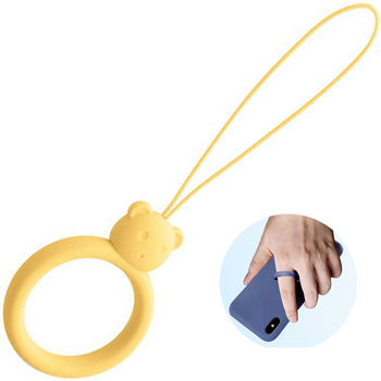 Silikonowa smycz do telefonu zawieszka miś niedźwiadek ring na palec żółty