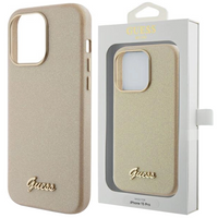 Etui Guess Glitter Glossy Script do iPhone 15 Pro Max - złote