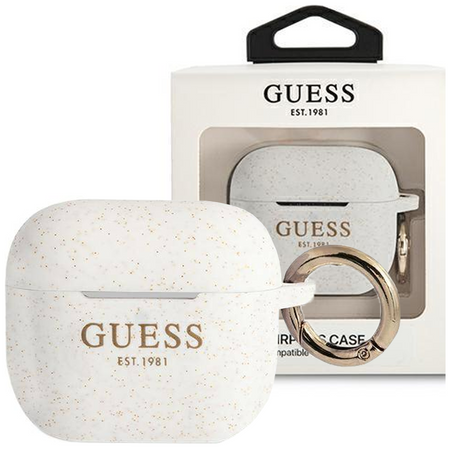 - 1 x Guess GUAPSGGEH AirPods Pro cover biały/white Silicone Glitter