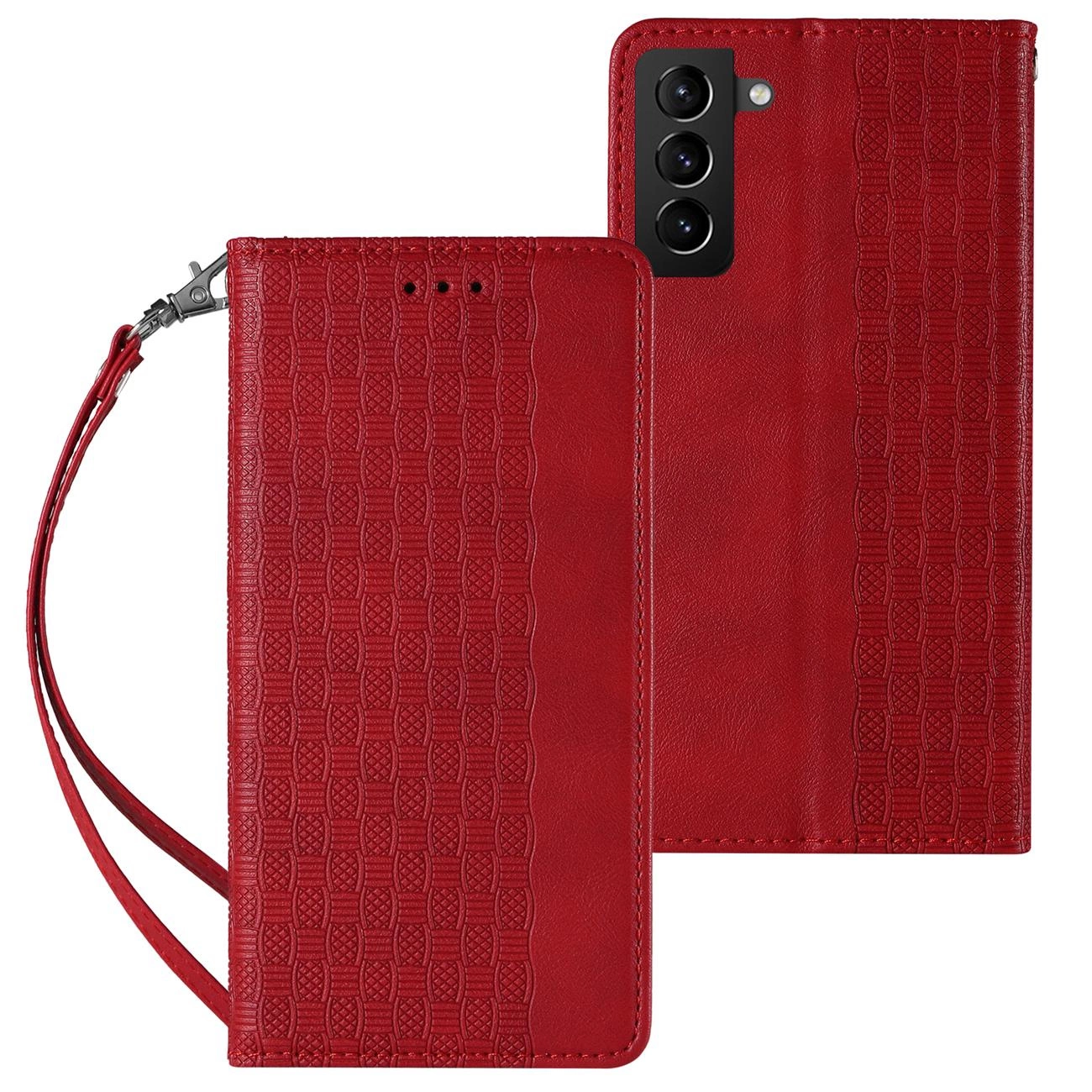 - 1x Magnet Strap Case etui do Samsung Galaxy S22+ (S22 Plus) pokrowiec portfel + mini smycz zawieszka czerwony