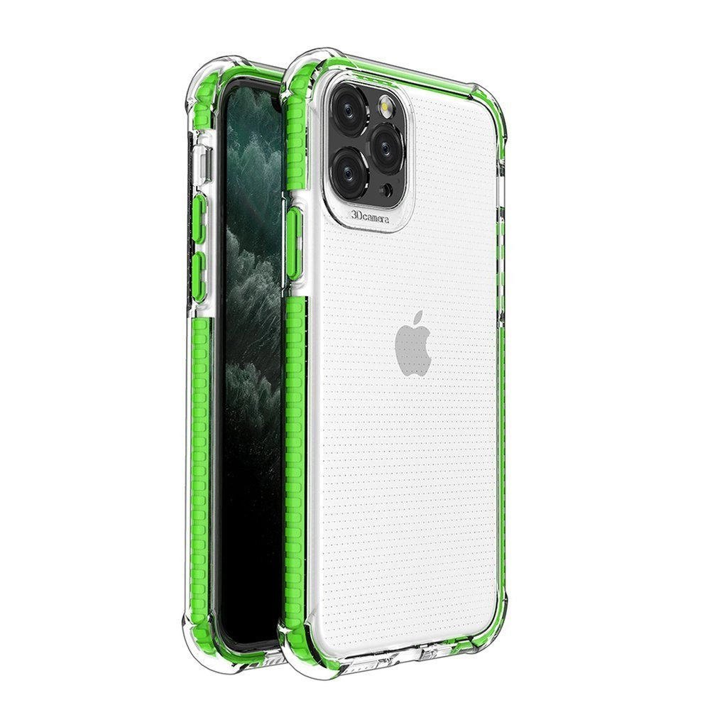 - 1x Spring Armor żelowy elastyczny pancerny pokrowiec z kolorową ramką do iPhone 12 mini ciemnozielony