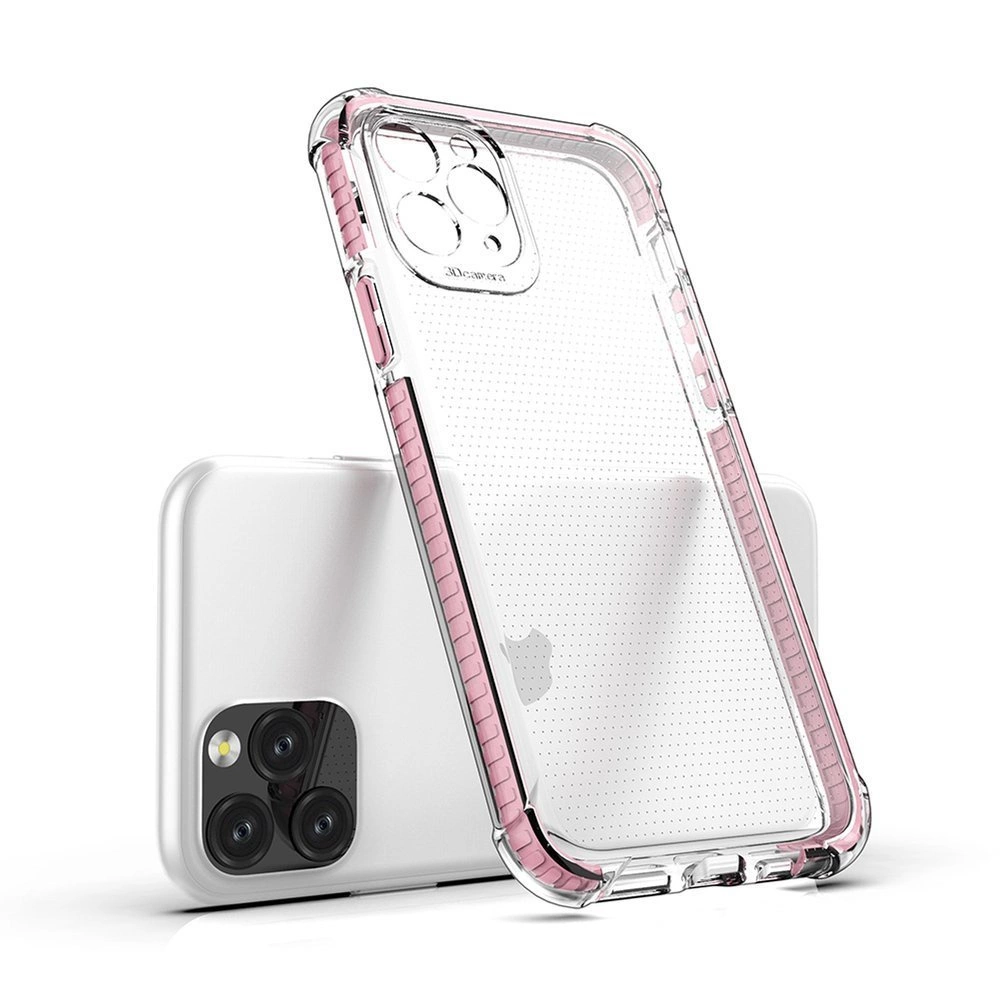 - 1x Spring Armor żelowy elastyczny pancerny pokrowiec z kolorową ramką do iPhone 12 mini różowy