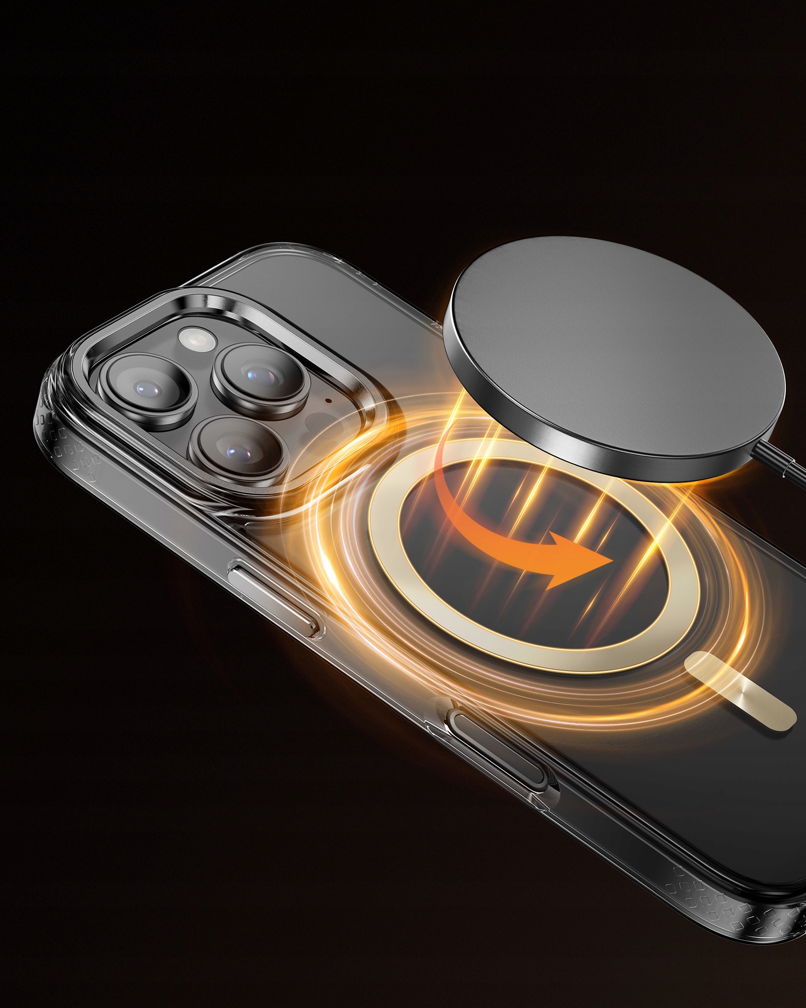 Wbudowany w etui pierścień magnetyczny pewnie złapie każdy Twój gadżet z MagSafe, a Ty możesz być pewny że ładowanie odbywa się bez przeszkód.