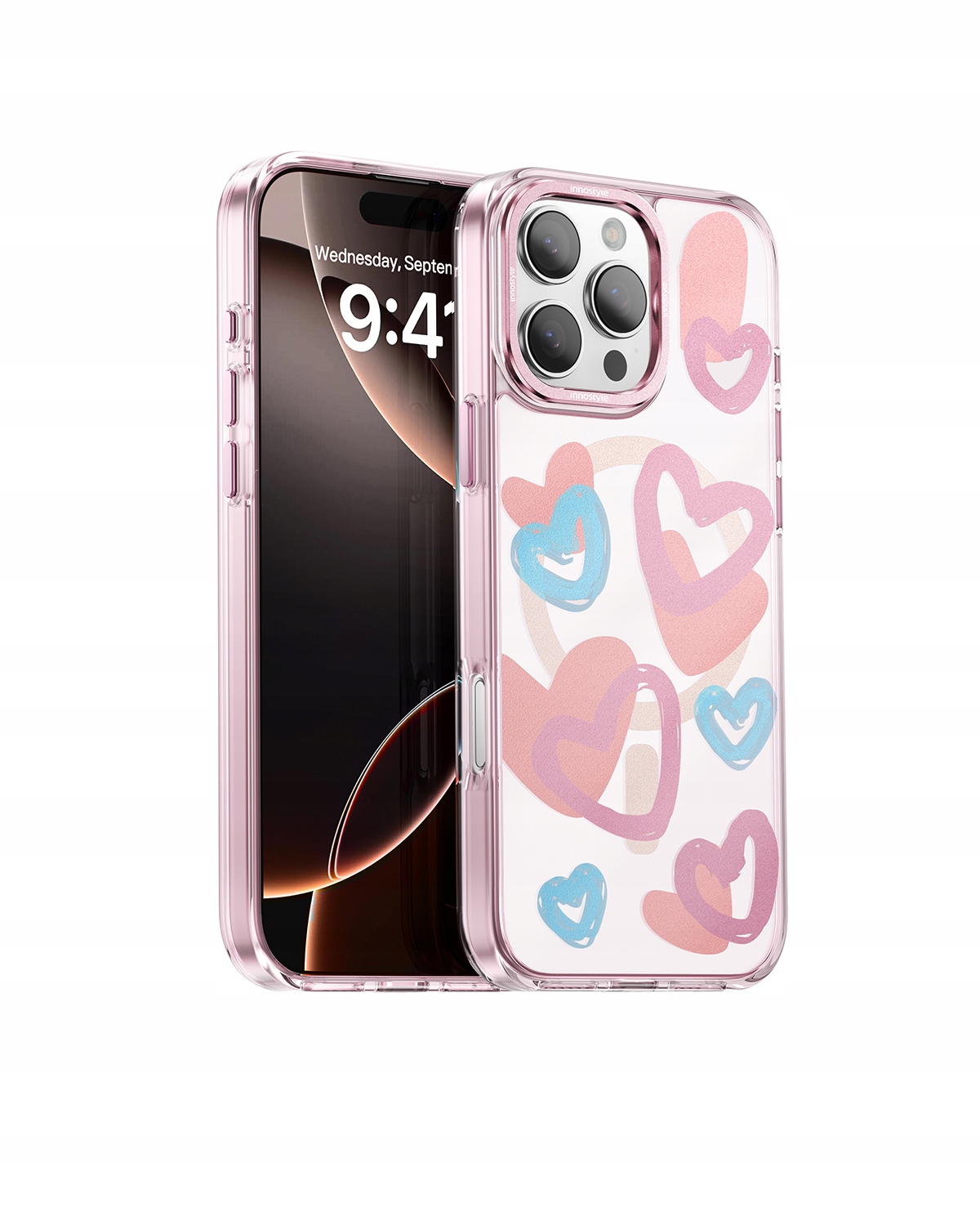 - 1 x Innostyle Pink Collection - Etui do iPhone 16 Pro Max Serduszka