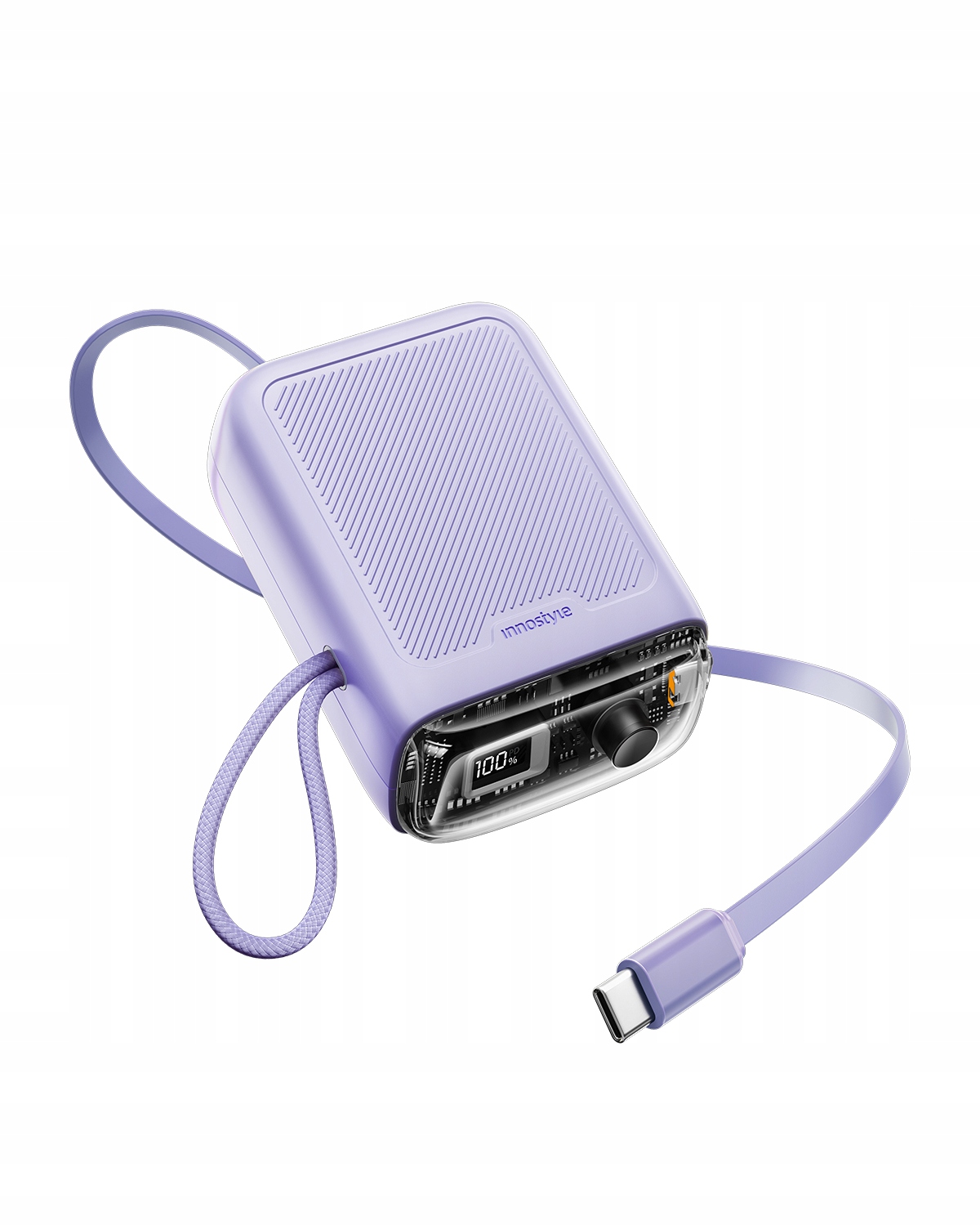 - 1 x Innostyle TransiMini FlexCharge - Powerbank 10000mAh 33W z kablem zwijanym USB-C Fioletowy