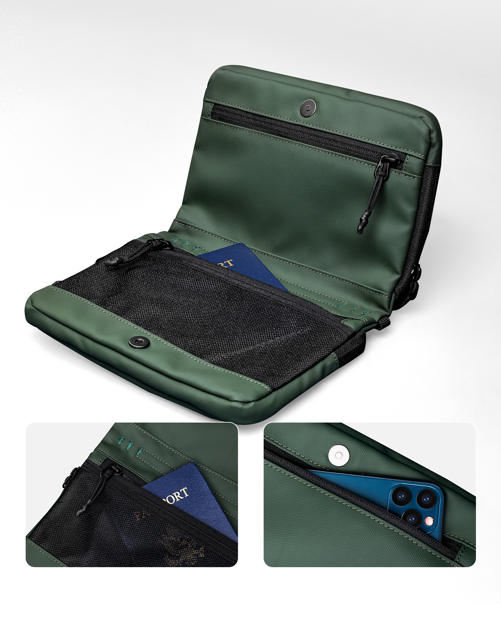 Saszetka FlexiCarry to prawdziwy towarzysz w codziennym dynamicznym życiu pełnym przygód i niespodziewanych sytuacji. Dlatego nasza saszetka posiada dwie ukryte kieszenie do których można się dostać dopiero po rozłożeniu saszetki. Kieszenie są dedykowane na najważniejsze przedmioty w podróży takie jak paszport czy telefon. Od tej pory nie musisz martwić się kieszonkowcami zwiedzając piękne i zatłoczone miasta.