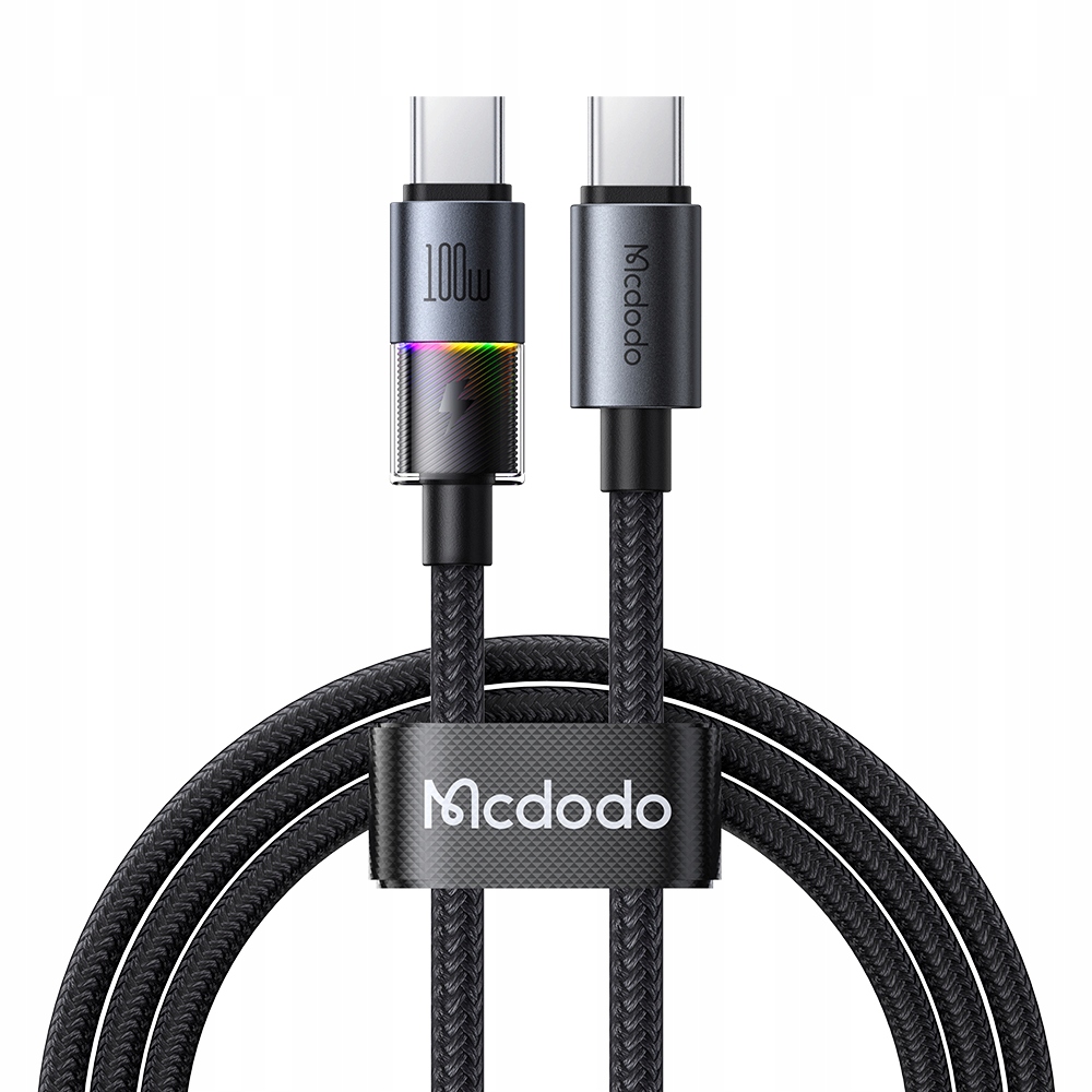 MCDODO KABEL USB-C DO TELEFONU SZYBKIE ŁADOWANIE TYP C 100W 1M LED CZARNY