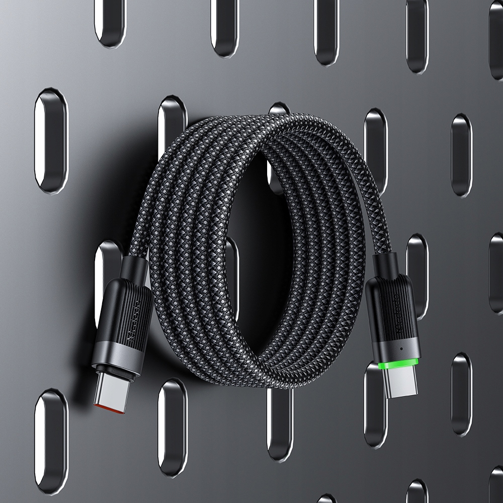Kabel został wyposażony w wbudowane magnesy, które automatycznie zwijają go w schludną formę, eliminując plątanie. To wyjątkowo praktyczne rozwiązanie, które pozwala na wygodne przechowywanie i porządek na biurku lub w torbie.