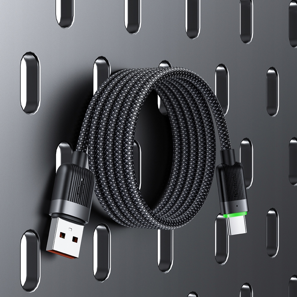 Kabel został wyposażony w wbudowane magnesy, które automatycznie zwijają go w schludną formę, eliminując plątanie. To wyjątkowo praktyczne rozwiązanie, które pozwala na wygodne przechowywanie i porządek na biurku lub w torbie.
