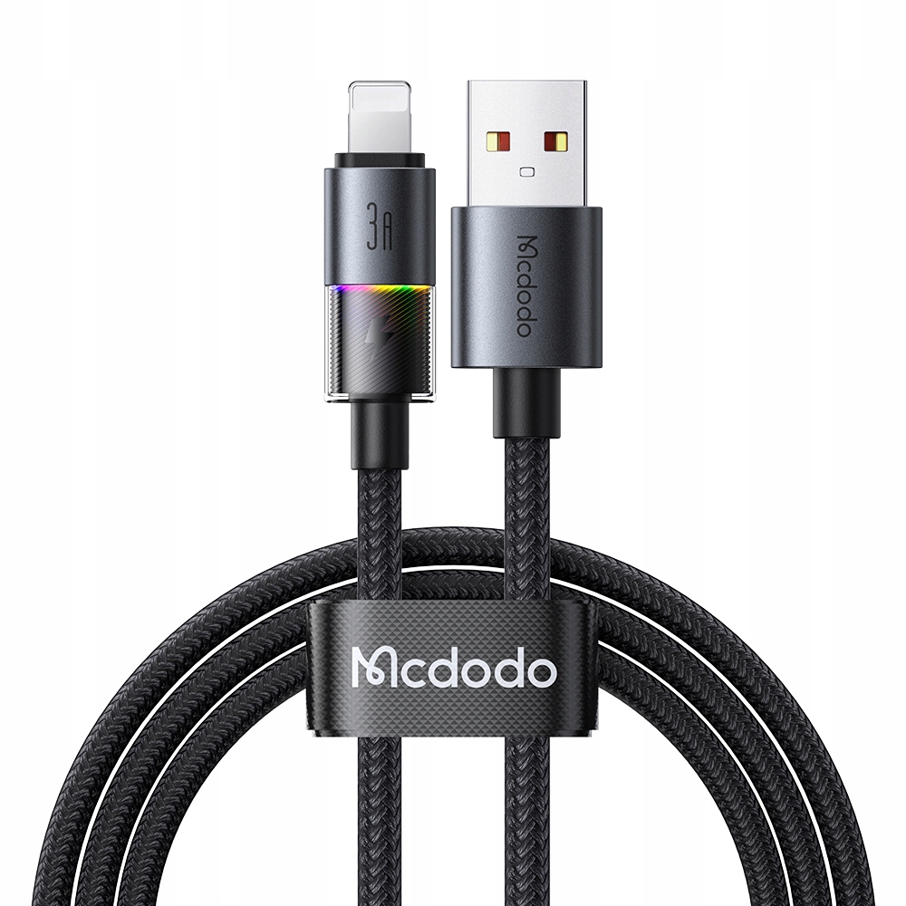 MCDODO KABEL USB SZYBKIE ŁADOWANIE DO IPHONE LIGHTNING 3A 36W 1M LED CZARNY