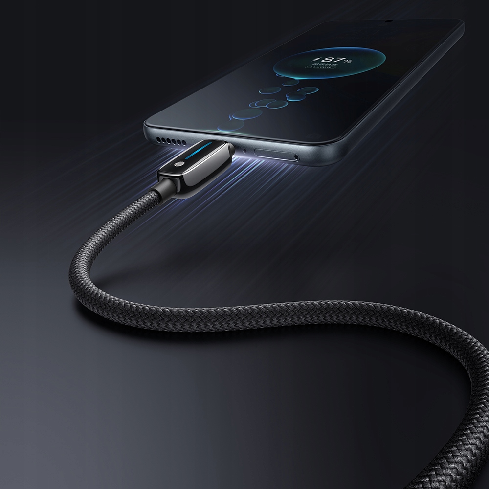 Diody LED na kablu pokazują prędkość ładowania: wolne, szybkie i pełne. Bez patrzenia na ekran wiesz, kiedy energia płynie i kiedy możesz odłączyć. Prosto. Intuicyjnie. Efektownie.