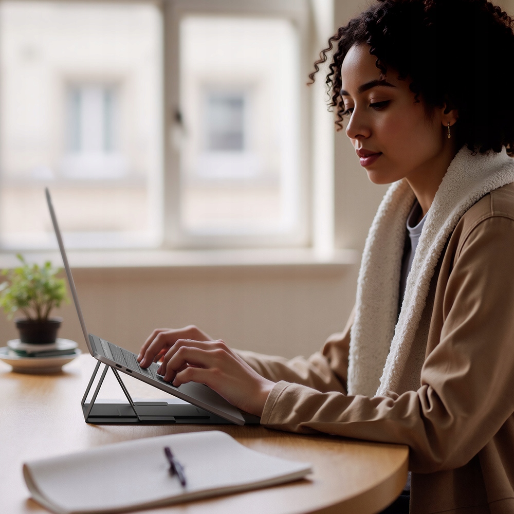 - Tylko 4,5 mm grubości – lekka i mobilna konstrukcja, doskonała do pracy zdalnej, na uczelni czy w podróży.