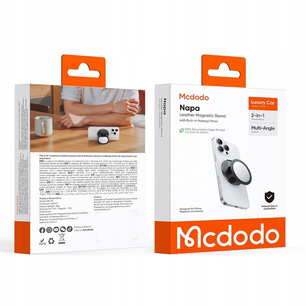 Z pozoru prosty, ale skrywa znacznie więcej. Mcdodo Napa z wbudowanym lusterkiem łączy w sobie uchwyt, stojak i eleganckie akcesorium codziennego użytku. Magnetyczne mocowanie da Ci komfort, jakiego potrzebujesz każdego dnia.
