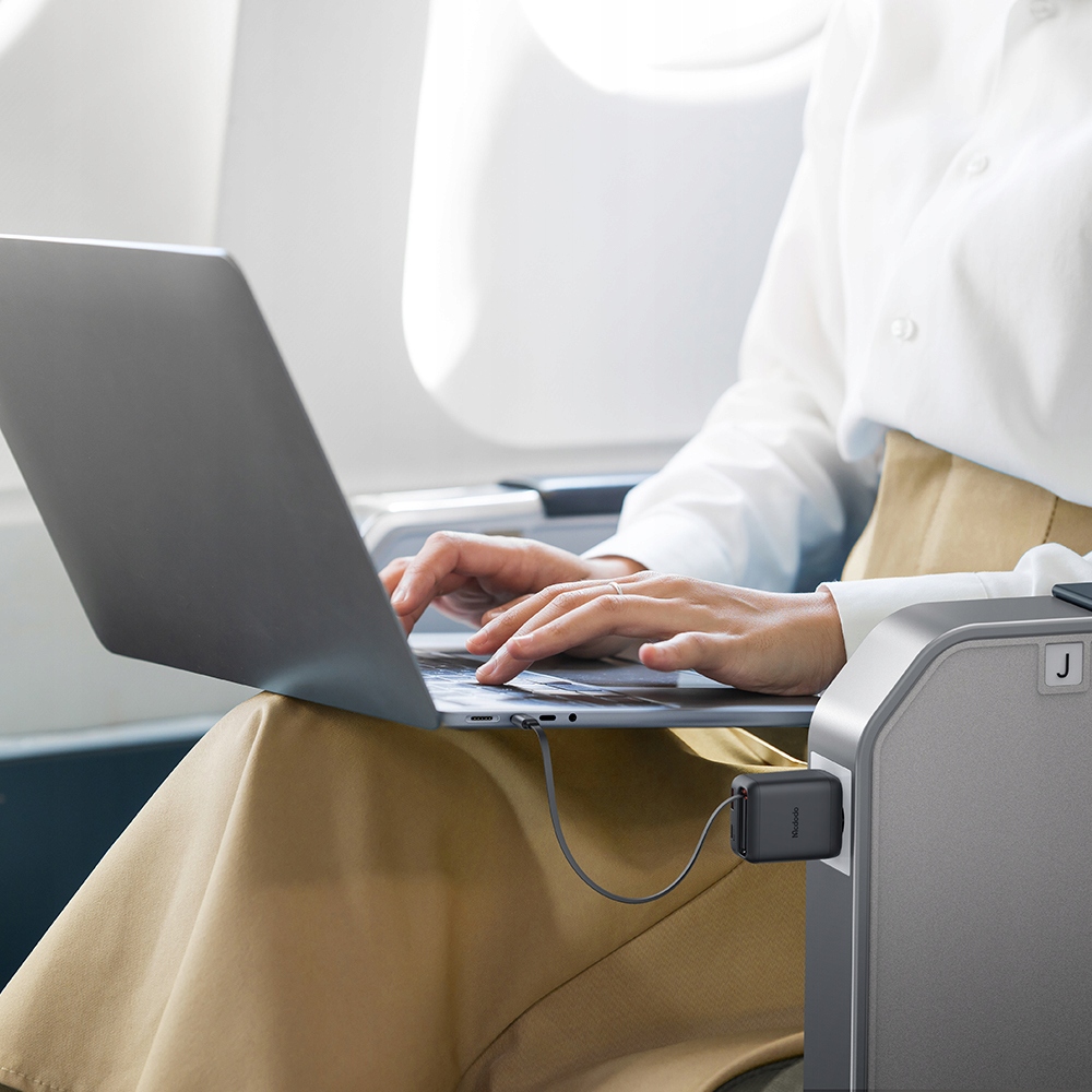 Od teraz już nigdy nie zapomnisz kabla do ładowarki. Wbudowany w ładowarce zwijany kabel USB-C o długości 65 centymetrów zawsze idealnie dopasujesz do swoich potrzeb.