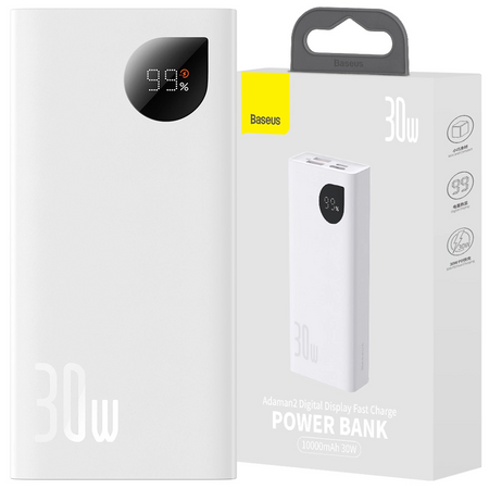 Powerbank Baseus Adaman2 z wyświetlaczem cyfrowym 2x USB-A / 1x USB-C 10000mAh 30W - biały
